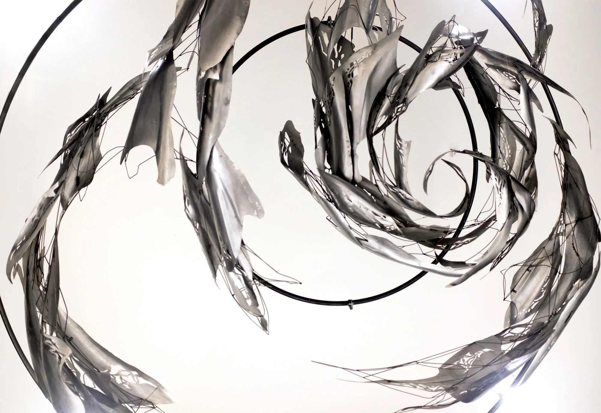Spirals are found everywhere in the natural world. We see them in plants, seashells, weather patterns, whirlpools, schools of fish, galaxies and our own DNA. They are simultaneously both simple and intelligent, lifeless and alive, unconscious and conscious. This sculpture reflects upon the deep inner connection we have with nature and existence.